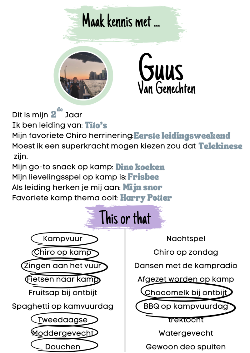 Bij Chiro Kassei staat iedere week klaar om onze leden een onvergetelijke tijd te bezorgen! Onze leidingsploeg bestaat uit een enthousiaste en gemotiveerde groep jongeren die zich vol overgave inzetten om elke week opnieuw superleuke activiteiten te organiseren. Onze leidingsploeg staat ook dit jaar weer met volle goesting klaar om er een topjaar van te maken! Hier geven we je wat extra info over wie we zijn. Neem gerust een kijkje om te ontdekken wat jouw leiding allemaal leuk vindt!